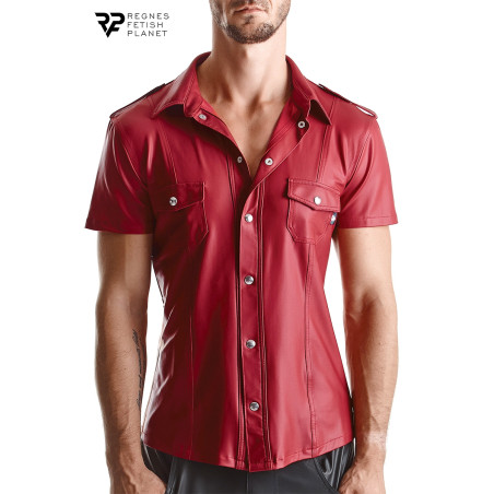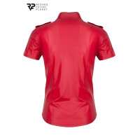 Carlo Herrenhemd Wetlook Rot von Regnes Fetish Planet. Ein Stück mit militärischer Inspiration, neu interpretiert für die Fetisch-Community und in Europa gefertigt.