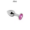 Glatter und angenehmer Analplug aus Metall mit glänzendem rosa Diamant, 8 cm lang und 4 cm im Durchmesser.
