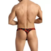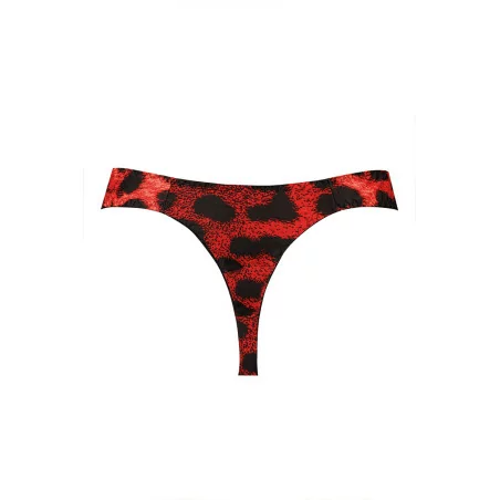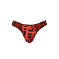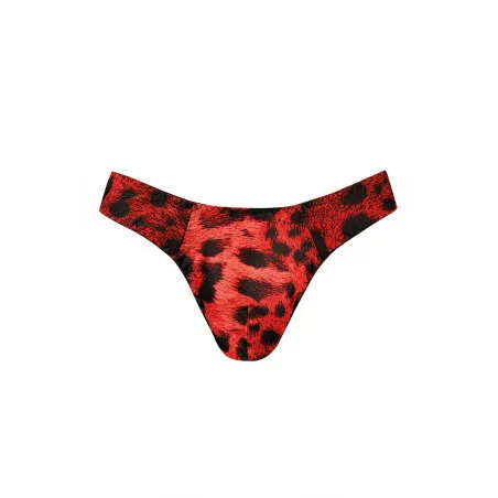Zeigen Sie Ihre wilde Seite mit diesem gewagten String mit rotem und schwarzem Leopardenmuster. Ein Stück Herrenwäsche, das tierische Sinnlichkeit mit provokativem Design für einen absolut sexy Look kombiniert.