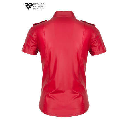 Carlo red wetlook men's shirt by Regnes Fetish Planet. A military-inspired piece reimagined for the fetish community, crafted in Europe.