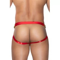 This ultra-sexy jockstrap combines a shiny red fabric with golden chains on the sides, creating a sophisticated and undeniably erotic aesthetic. Its wide elastic bands ensure optimal support while enhancing your curves.
