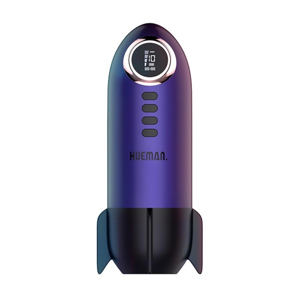 The Blast Off by Hueman fully embraces its rocket look. The iridescent blue-purple casing, the fins at the base, the LED panel on top — this is pure Hueman style, and deliberately extraterrestrial. But behind the design, there is a real engine: 10 vibration modes and 4 suction levels that can work independently or together.