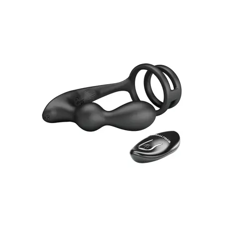 El Marshall de Pretty Love es un 2 en 1 pensado para quien quiere algo más que “vibración y ya”: por un lado, un cock & ball ring que ayuda a mantener una erección más firme durante más tiempo; por otro, un estimulador prostático con 12 modos de vibración controlados con mando.