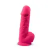Un gode réaliste rose vif en silicone double densité SILEXPAN avec gland, veines, testicules et ventouse. 21,5 cm de long, 4,2 cm de diamètre. Thermo-réactif : plus souple à chaud, plus ferme à froid. Compatible harnais. Le gode qui a l'air fun et qui tape comme un vrai.