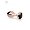 Un plug anal en aluminium finition or rose avec un cristal noir taillé serti dans la base. Lisse, lourd, élégant — c'est un bijou anal de luxe compatible avec le temperature play et tous les lubrifiants.