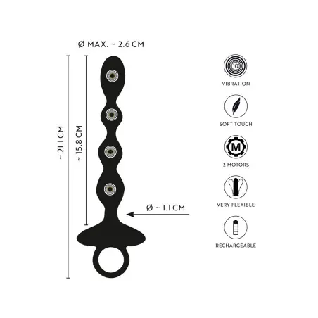 Le perline anali flessibili con vibrazioni “jumping” di ANOS rendono il gioco anale ancora più dinamico: le vibrazioni “saltano” da una sfera all’altra per una stimolazione progressiva e super coinvolgente. In silicone premium nero con 4 sfere graduate, sono perfette per puntare dritto alla prostata e far salire il piacere con calma… o con cattiveria.