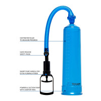 Het is duidelijk een instapmodel. Geen franjes, geen elektronica, geen gadgets. Gewoon een transparante blauwe cilinder, een slang, een pomp en een manchet aan de basis. Voor wie het concept wil uitproberen voordat hij overstapt naar een geavanceerder model, is dit precies wat je nodig hebt.